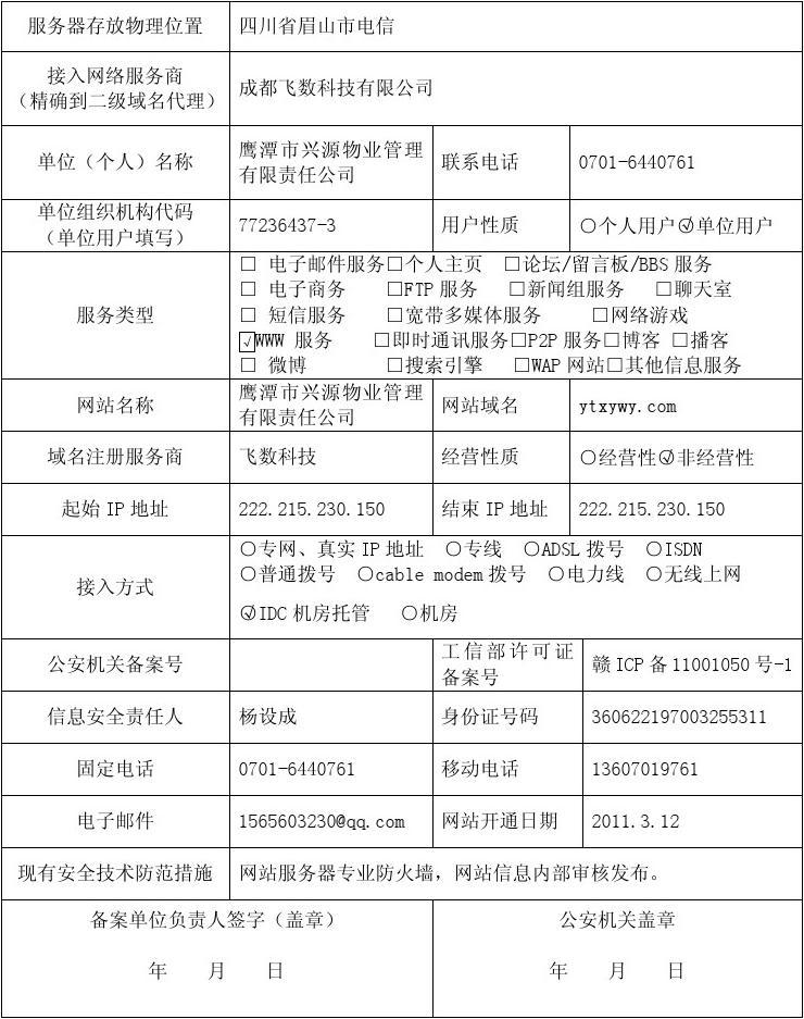 ,國際互聯(lián)網(wǎng)網(wǎng)站登記信息表