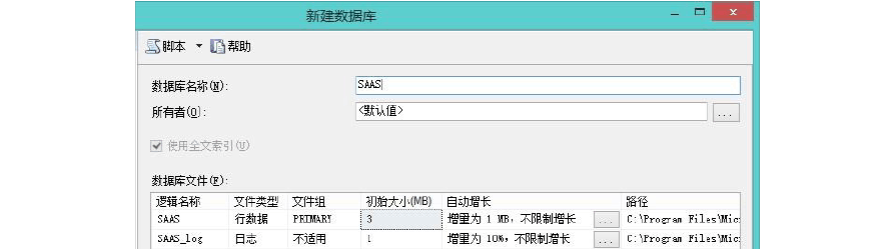 創(chuàng)建名為“SAAS ”的數(shù)據(jù)庫。