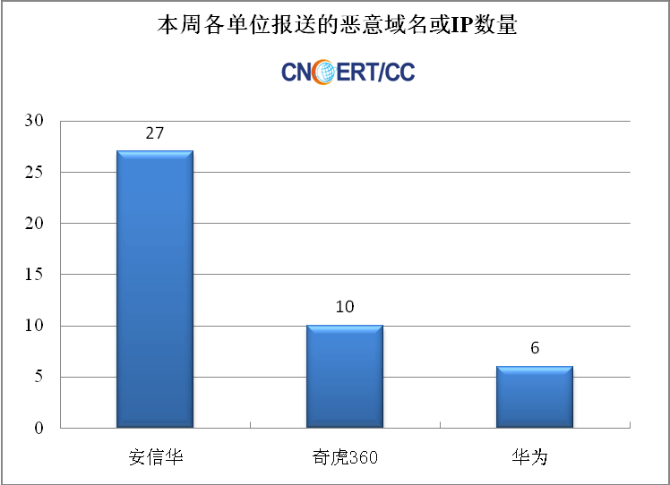 此外,通信行業(yè)互聯(lián)網(wǎng)信息通報(bào)成員單位向CNCERT 共報(bào)送了43個(gè)惡意域名或IP(去重后