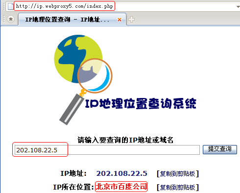 舉例:查看主機(jī)(IP 為:202.108.22.5)的地理位置