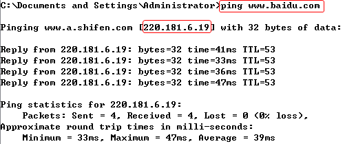 舉例:想知道baidu 服務(wù)器的IP 地址。