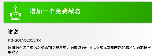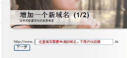 如我再申請(qǐng)一個(gè)kingqiao.tk 域名,填好kingqiao 后按下一步出現(xiàn)如下界面: