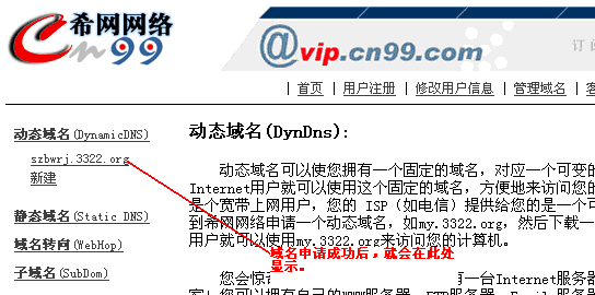 當郵件收到之后,你就可以在www.3322.org 上輸入用戶名和密碼,登錄。