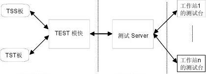 測試系統(tǒng)由硬件測試設(shè)備、主機軟件和終端軟件組成。測試系統(tǒng)各組成部分之間的關(guān)系如圖7-1所示。各部分的具體實現(xiàn)原理請參見《C&C08 數(shù)字程控交換系統(tǒng) 技術(shù)手冊》的內(nèi)容。