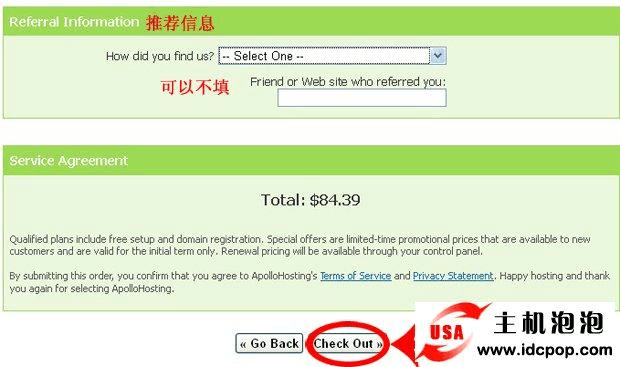 11. 下面顯示了費(fèi)用情況和服務(wù)協(xié)議,然后點(diǎn)擊Check Out提交賬單。