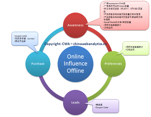 對于這些購買意向的監(jiān)測,并不是沒有辦法,最常用的方法是提供網絡的優(yōu)惠碼(coupon code ),并根據不同的coupon code 來定位在線營銷的真正來源。不過,信息在線上和線下的轉化過程中,會出現(xiàn)模糊和丟失。因此,這個方法可用,但不準確。