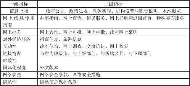 表1布朗大學(xué)構(gòu)建的政府門(mén)戶(hù)網(wǎng)站質(zhì)量建設(shè)績(jī)效評(píng)估的指標(biāo)體系