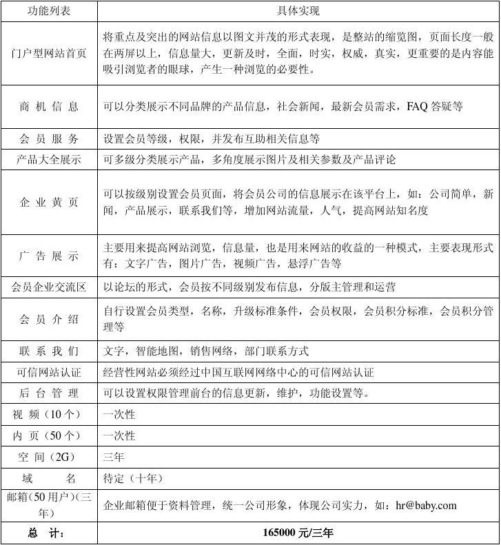 二、 網(wǎng)站內(nèi)容及報(bào)價(jià)