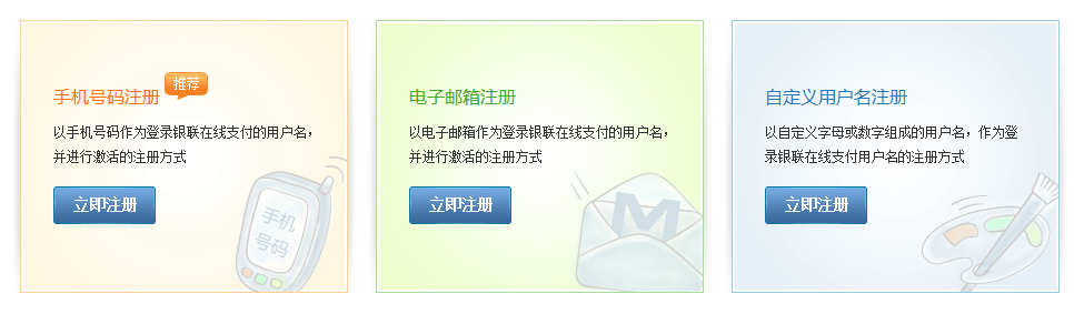 根據(jù)用戶選擇方式注冊,填寫注冊相關(guān)信息資料后進入銀聯(lián)用戶中心。