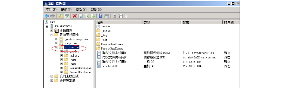 在TS-ADMTDC02上設(shè)置ms.com.cn 的區(qū)域傳送