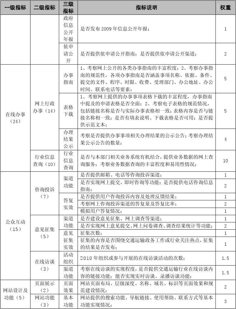 2011年交通運輸行業(yè)政府網(wǎng)站績效評估指標(biāo)體系