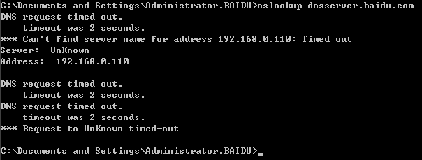 下面再打開 cmd 鍵入命令:nslookup dnsserver.baidu.com
