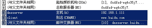 這里的主機(jī) ip 地址為 dns 服務(wù)器的 ip 地址:以下的主機(jī)名為:dnsserver.baidu.com (正向