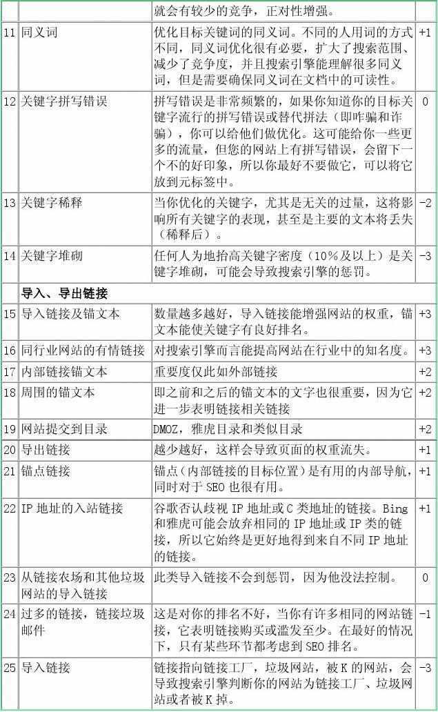 這是影響谷歌,雅虎,百度等搜索引擎的排名清單。該列表包含正面,負(fù)面和中性的因素。