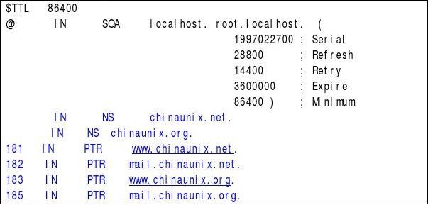 IN MX 10 mail.chinaunix.net. www IN A 192.168.2.181