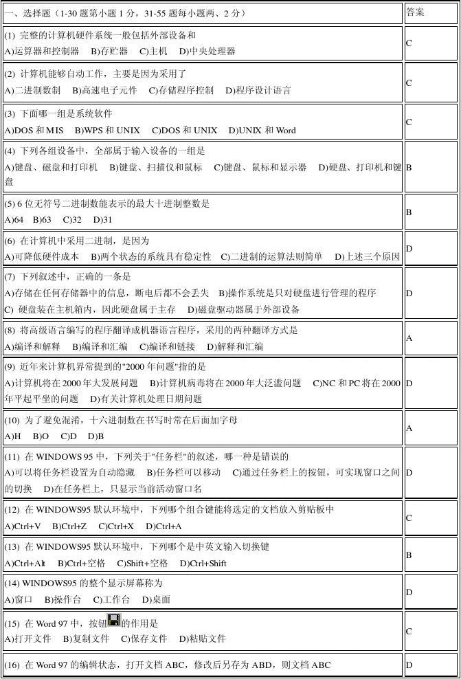 全國計算機等級考試一級B 模擬練習題(第三十六套)