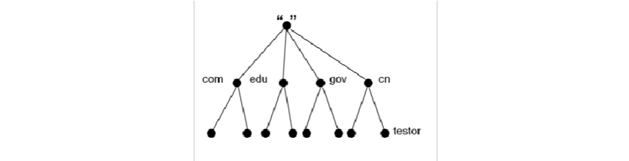 DNS 的分布式數(shù)據(jù)庫以域名為索引,每個域名事實(shí)上只是反轉(zhuǎn)樹中的一個路徑(從節(jié)點(diǎn)向根的方向),并用“. ”來分隔路徑上所出現(xiàn)的各個名字。