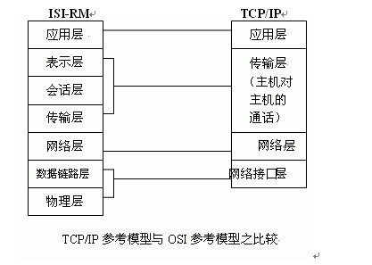 TCP/IP模型由4個概念上的層次組成,自上而下為網(wǎng)路接口層、網(wǎng)絡(luò)層、傳輸層和應(yīng)用層。與OSI7層模型相比,TCP/IP沒有設(shè)表示層和會話層,這兩層的功能由最高層即應(yīng)用層提供。同時,TCP/IP分層協(xié)議模型在各層名稱定義及功能定義等方面與OSI 模型也存在著差異。