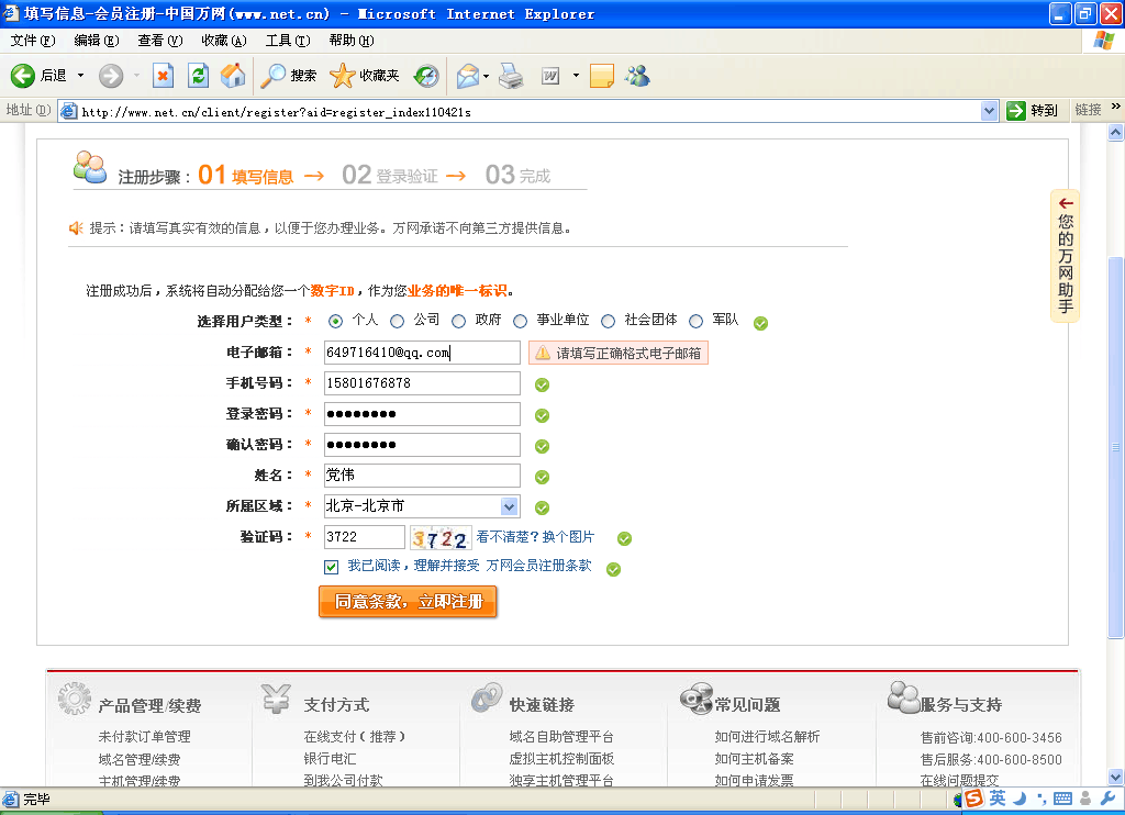 第三步:輸入注冊信息