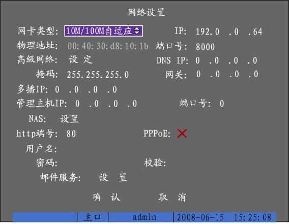DVS 支持PPPOE 自動撥號的功能可以連接Modem 進(jìn)行ADSL 撥號獲取公網(wǎng)IP 地址進(jìn)行訪問,方法是: 一:將設(shè)備ip 、掩碼、網(wǎng)關(guān)均設(shè)置為0.0.0.0