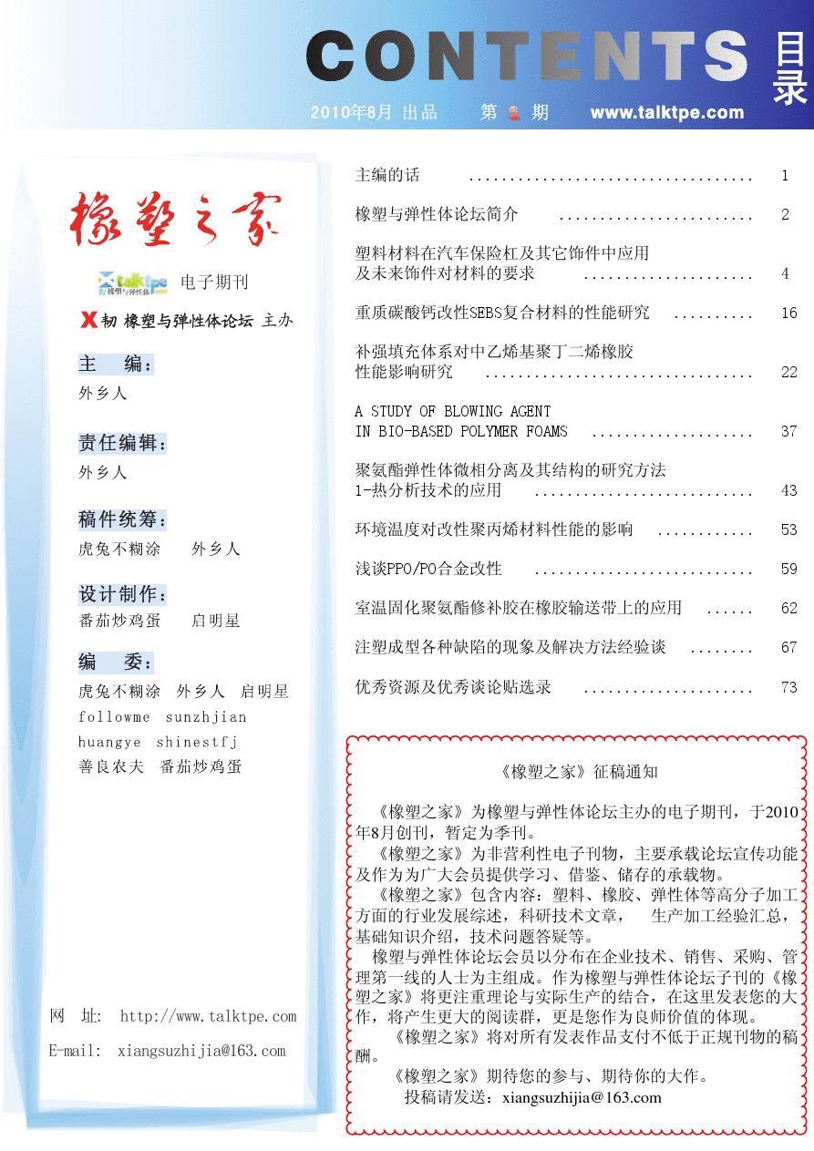經(jīng)過近三個月的籌備,在夏日炎炎,驕陽似火的日子里,《橡塑之家》電子期刊創(chuàng)刊號在眾人的期盼中,懷著忐忑不安的心情面世了。