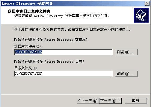 在這里要指定AD 數(shù)據(jù)庫和日志的存放位置,如果不是C 盤的空間有問題的話,建議采用默認。