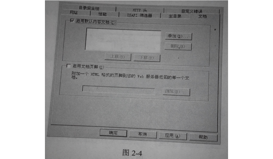 Web 站點(diǎn)的“文檔”選項(xiàng)卡如圖2-4所示。為了使用戶能正常訪問該網(wǎng)站,應(yīng)該如何操作?