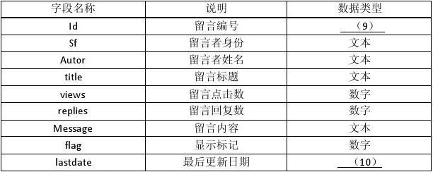 該網(wǎng)站數(shù)據(jù)庫采用Access, 其數(shù)據(jù)庫名為data.mdb ,表為post 。Post 表設(shè)計(jì)如下表4-1所示。