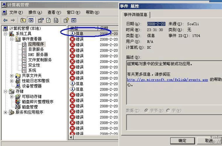 12 此時再打開事件查看器,如圖20,每隔5分鐘出現(xiàn)一次的紅叉終于沒有了,整個世界清凈了。