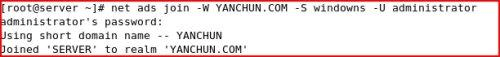 如果上面的不行 可以用 net rpc join –S DCFQDN –U administrator