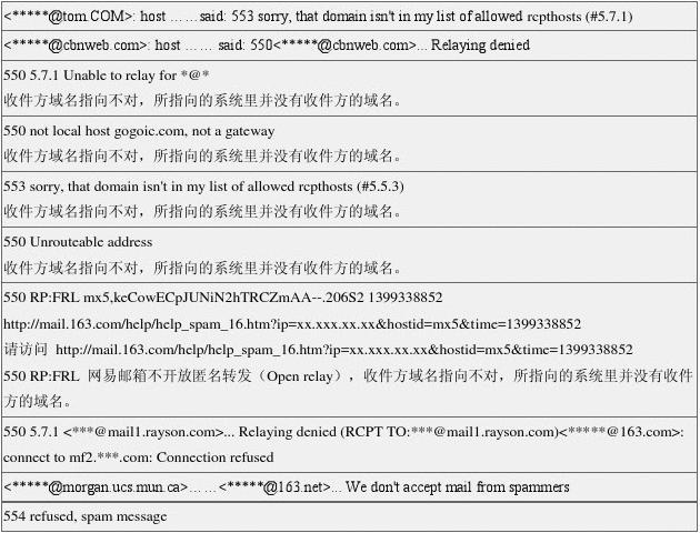 其次,因不符合目前新浪的反垃圾策略被拒,得到的錯誤代碼為以下幾種,請投訴方根據(jù)日志或錯誤代碼進(jìn)行修改。