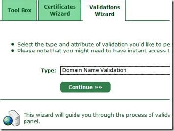 接下來就可以在control panel 上的Validations Wizard 進(jìn)行web ssl 憑證申請(qǐng)啰, 畫面如下: