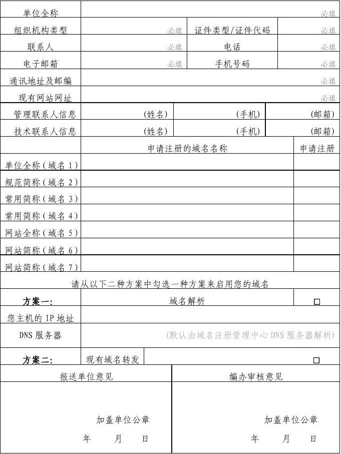 zwgy 2017-03-27 4794 政務(wù)和公益機(jī)構(gòu)域名注冊管理中心政務(wù)公益域名注冊申請表 政務(wù)和公益機(jī)構(gòu)域名注冊管理中心政務(wù)公益域名注冊申請表