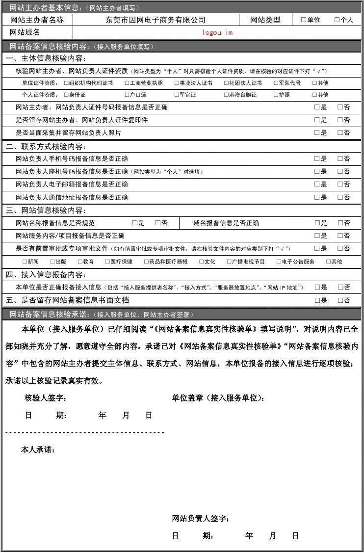 廣東《網(wǎng)站備案信息真實(shí)性核驗(yàn)單》模板(個(gè)人網(wǎng)站)業(yè)務(wù)經(jīng)驗(yàn) 因網(wǎng),電子商務(wù)有限公司