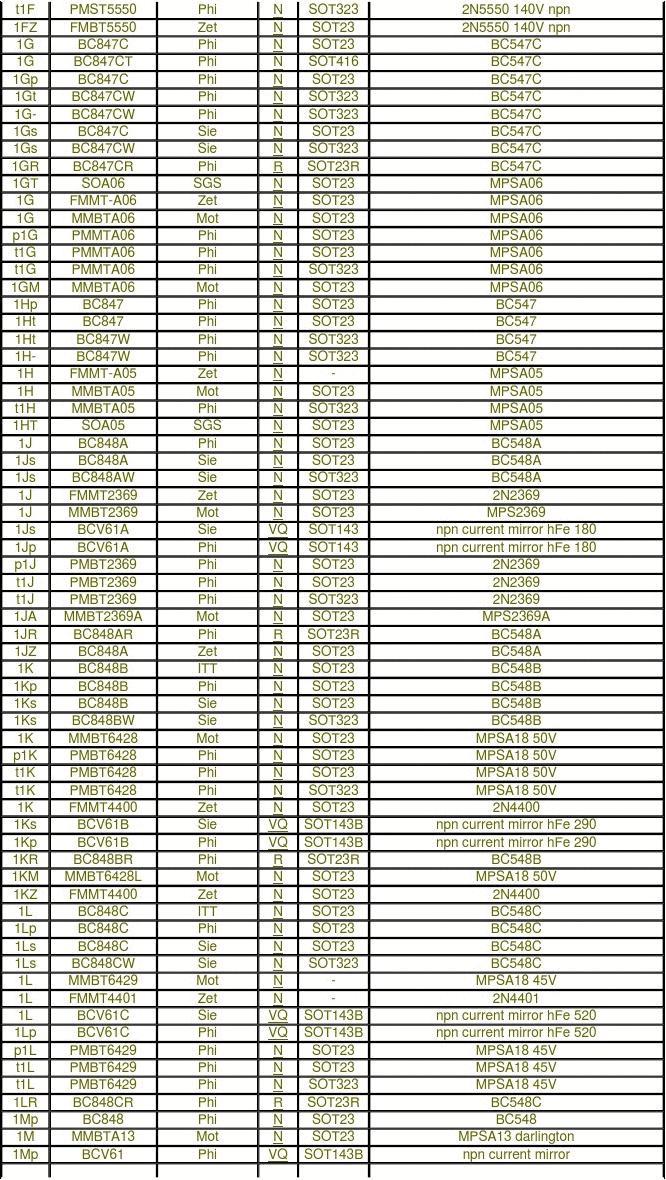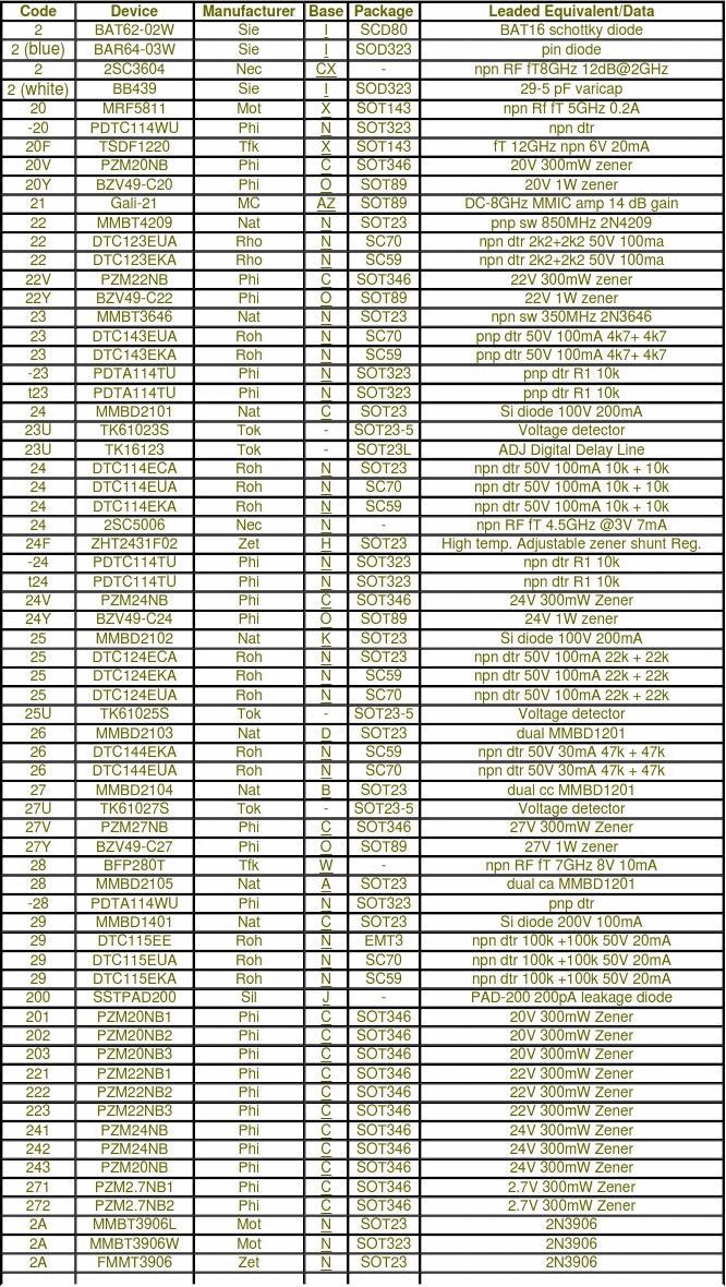 Manufacturer abbreviations:Agi CJe Dio Fch HP Inf ITT MC Mot Nat NecAgilent (was HP).Changjiang Elec