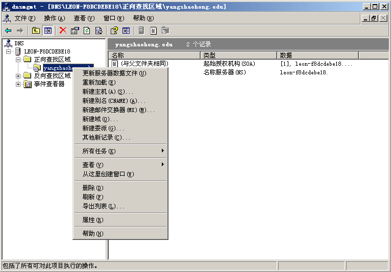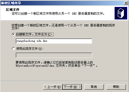 2. 添加DNS 區(qū)域; 區(qū)域名為yangshaohong .edu 。