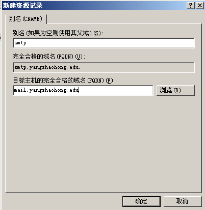 ,在“別名”一欄輸入smtp ,在目標(biāo)主機的完全合格的域名輸入
