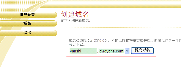 (固定外網(wǎng)IP 地址用戶可以省略此步驟),由于大多數(shù)客戶使用的ADSL 撥號上網(wǎng),外網(wǎng)IP 地址會變動,對通過網(wǎng)絡(luò)遠程訪問存在弊端,因此我們公司搭建了自己的域名服務(wù)器,客戶可以自己在域名服務(wù)器網(wǎng)站上申請域名,(有些公司域名申請必須通過手機號碼實名注冊,對用戶隱私泄漏有一定影響,我們的域名申請無需輸入用戶任何個人隱私信息)域名申請的中文網(wǎng)址為:http://cn.dvrdydns.com