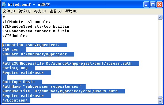 AuthUserFile D:/svnroot/myproject/conf/users.auth
