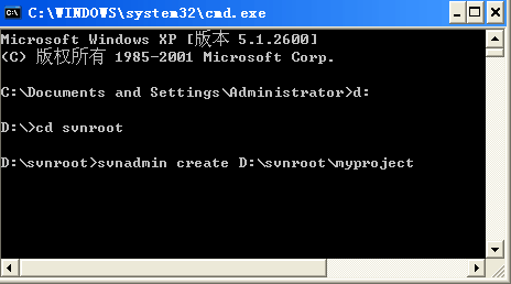 svnadmin create D:svnrootmyproject