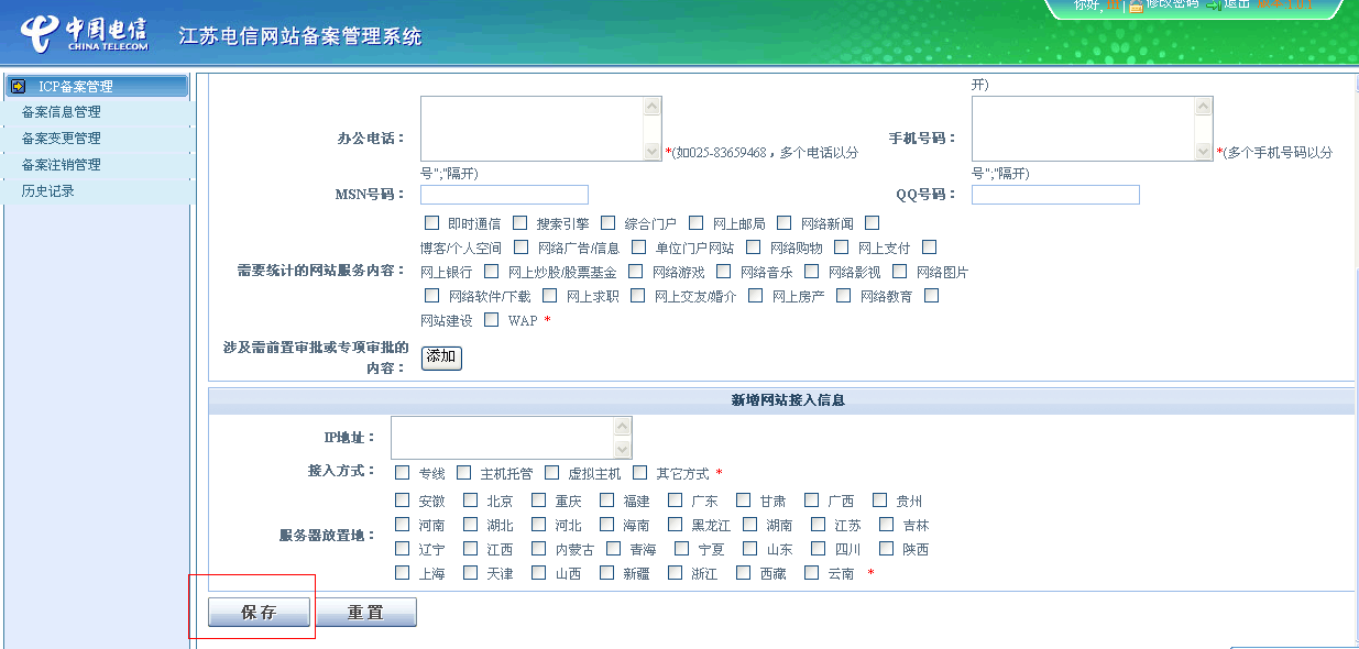 (一) 中國電信江蘇公司網(wǎng)站備案流程