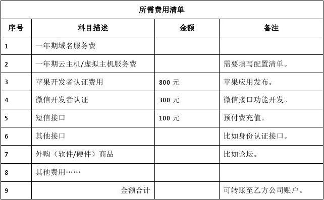 6、外購商品,一般是指本項(xiàng)目中涉及一部分功能不會自主研發(fā),而采取外購集成的方式,比如在電商系統(tǒng)里面集成一套功能相對完善的論壇子系統(tǒng),為了降低開發(fā)周期和成本,本公司會采購“discus ”這類開源論壇商業(yè)授權(quán),官方網(wǎng)站http://www.discuz.net/,其WEB 授權(quán)費(fèi)用為沒項(xiàng)目3.8萬元(可查看官網(wǎng)最新報(bào)價(jià)),如果項(xiàng)目包含移動端論壇,則需另外分?jǐn)?萬元接口授權(quán),接口授權(quán)總金額8萬元。