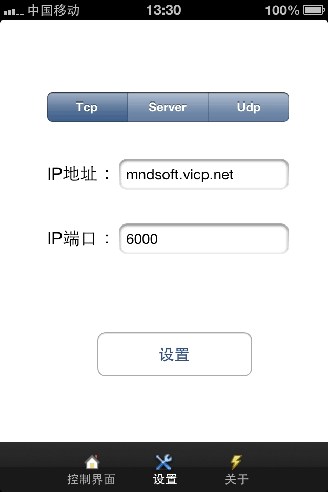 運行軟件,在【設(shè)置】選項卡中的IP 地址中輸入域名和端口號即可,如下圖: