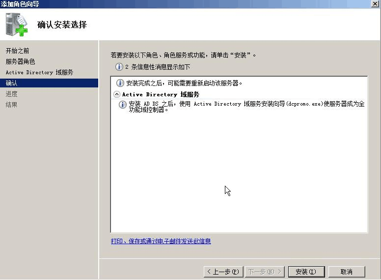 這時系統(tǒng)會生成一個配置信息,我們可以選擇導(dǎo)出,以用于在CORE 模式的2008中部署DC 。單機下一步,進行安裝,安裝完成后,會提示計算機進行重新啟動。