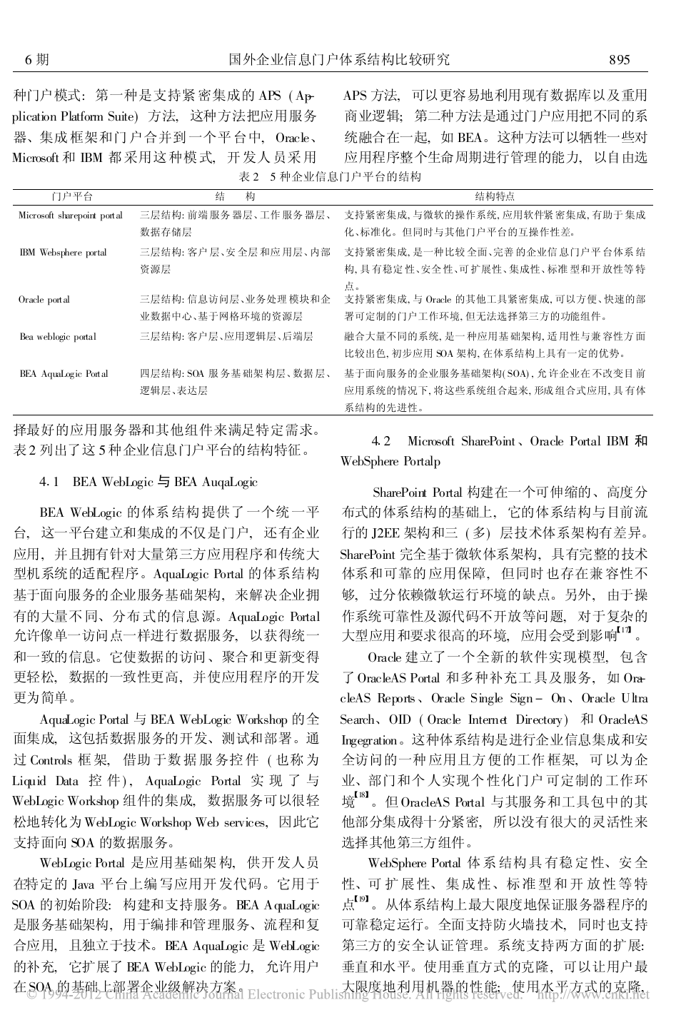 國外企業(yè)信息門戶體系結(jié)構(gòu)比較研究