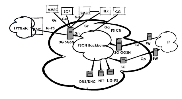圖中 PSCN 骨干網(wǎng)實(shí)際上是 UMTS 分組核心網(wǎng)的一個(gè)內(nèi)部數(shù)據(jù)網(wǎng)絡(luò)?,F(xiàn)在絕大多數(shù)運(yùn)營(yíng)商的核心網(wǎng)解決方案承載都是基于 IP 的,如果核心網(wǎng)中的設(shè)備都在相同地點(diǎn),則 PSCN 骨干網(wǎng)就可以配置成一個(gè)本地局域網(wǎng);如果涉及到異地網(wǎng)絡(luò)設(shè)備的連接,則是一個(gè)由路由器和交換機(jī)組成的 IP 網(wǎng)絡(luò)。本設(shè)計(jì)的IP 承載網(wǎng)也將運(yùn)用MPLS VPN來(lái)設(shè)計(jì)內(nèi)部交換網(wǎng)絡(luò)。