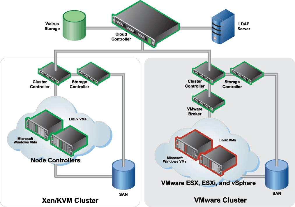 Eucalyptus 是一個與Amazon EC2兼容的IaaS 系統(tǒng)。Eucalyptus 包括云控制器(CLC )、