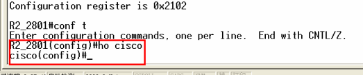 Enter configuration commands, one per line. End with CNTL/Z. R2_2801 (config)#hostname cisco //名字為cisco