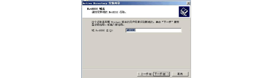 12. 這時(shí)系統(tǒng)會(huì)顯示上述域名對(duì)應(yīng)的域NetBIOS 名,默認(rèn)就可以,當(dāng)然你也可以自己修改填入新的名稱