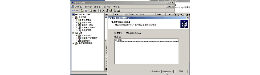 14. 安裝好一塊新的硬盤后,若是沒被建立過分區(qū),在使用系統(tǒng)內(nèi)置的“磁盤管理”工具管理新磁盤時(shí)會(huì)提示“磁盤初始化和轉(zhuǎn)換向?qū)А?,點(diǎn)擊下一步